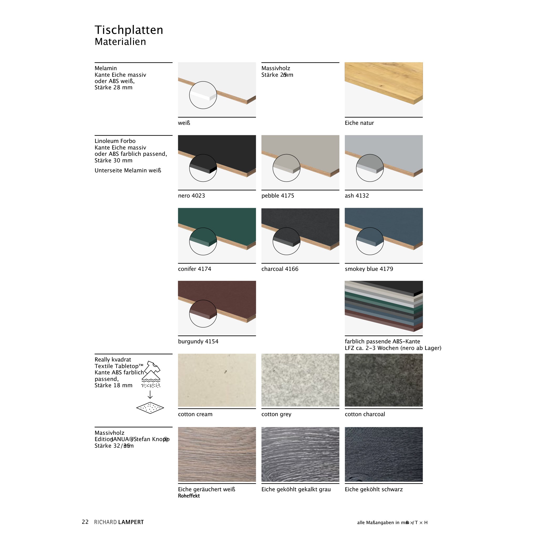 - Linoleum & Melamin Tischplatten werden mit einer Eichenkante produziert (auf Anfrage in farbgleicher Kante erhältlich)