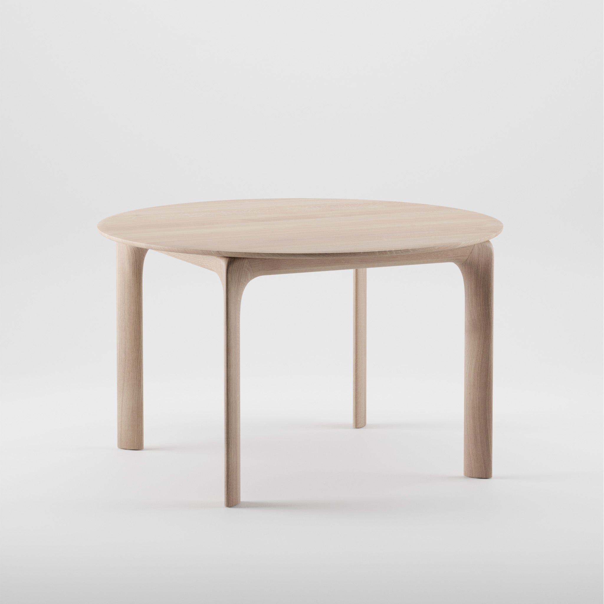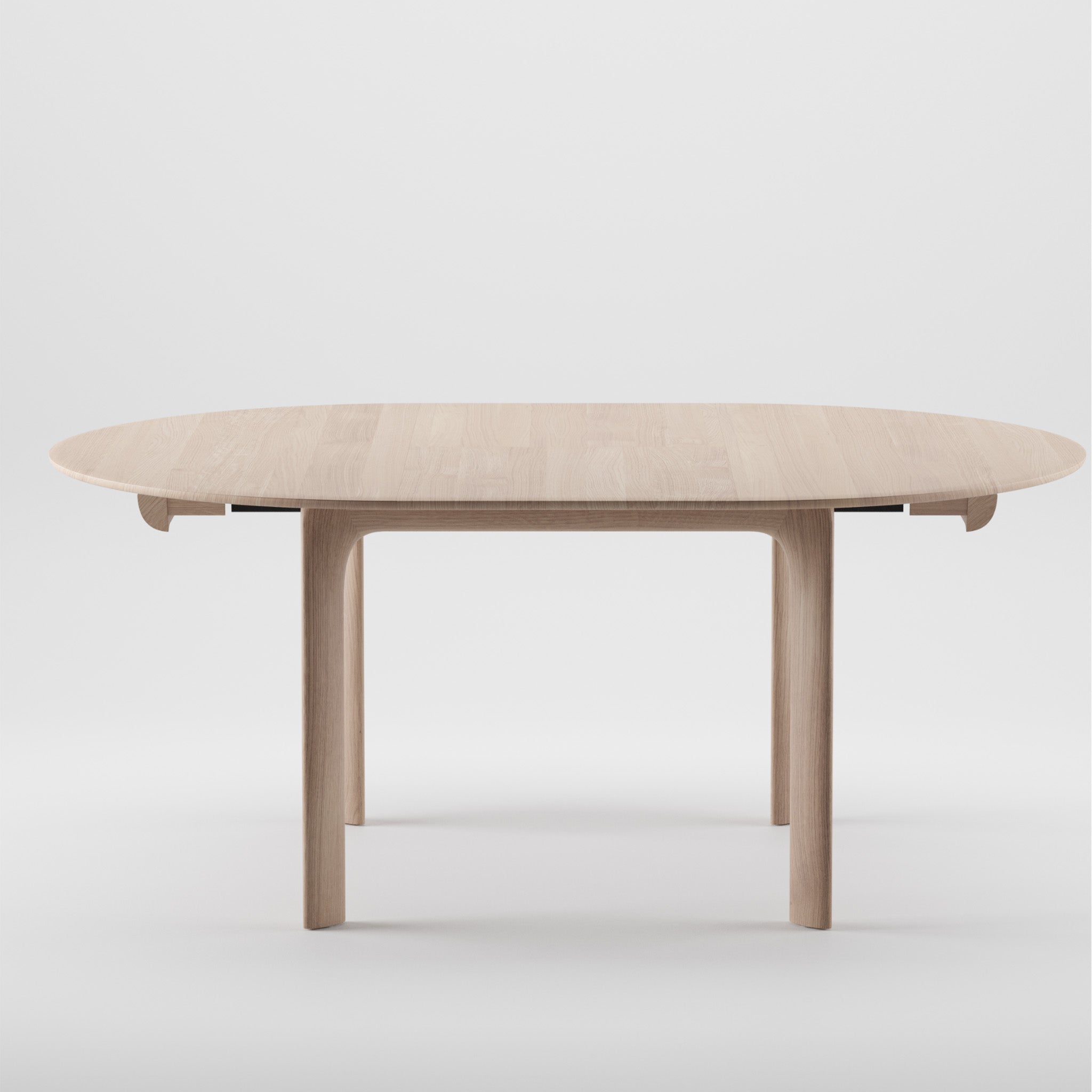 Der Fin-Ausziehtisch vereint meisterhaft anspruchsvolles Design mit alltagstauglicher Funktionalität. Seine runde Form schafft eine einladende, intime Atmosphäre für den täglichen Gebrauch, während der sanft gleitende, intuitive Auszugsmechanismus eine mühelose Erweiterung für besondere Anlässe ermöglicht – ohne die harmonische Linienführung zu unterbrechen.