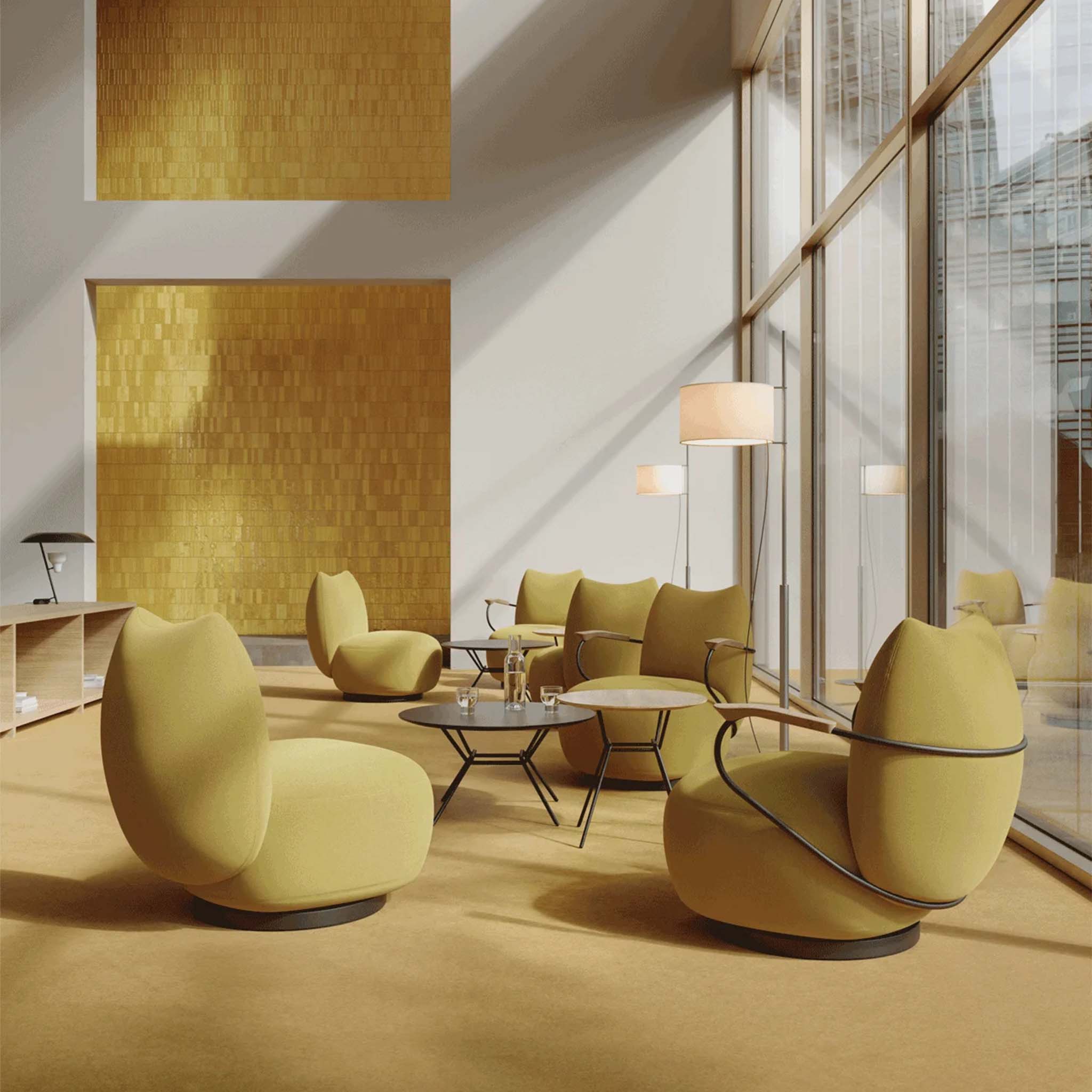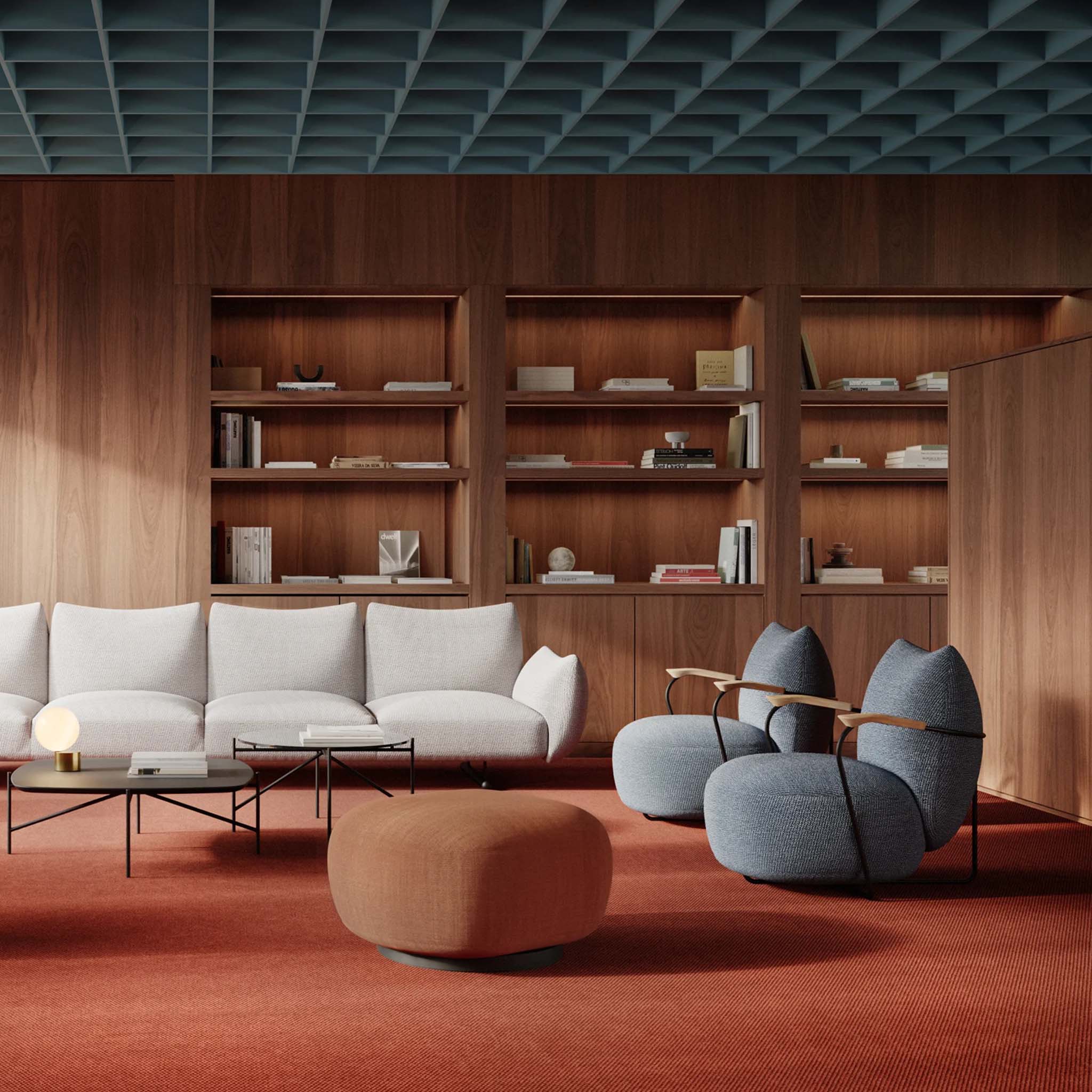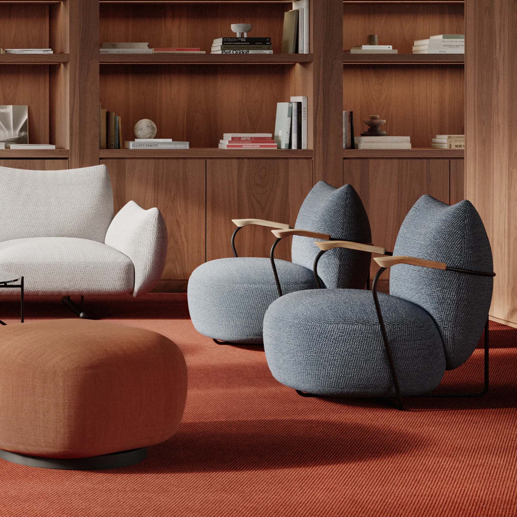 Eine voluminöse, aufgeblähte Form, die sofortigen Komfort suggeriert – kombiniert mit markant hervortretenden Kanten, um die weiche Fülle im Inneren noch stärker hervorzuheben. Buffa – schon der Name klingt weich, nachgiebig, fast wie ein Geräuschdämpfer. Die Assoziation zur italienischen komischen Oper ist nur eine beiläufige – durch eine gewisse Verspieltheit und Leichtigkeit in der Gestaltung.