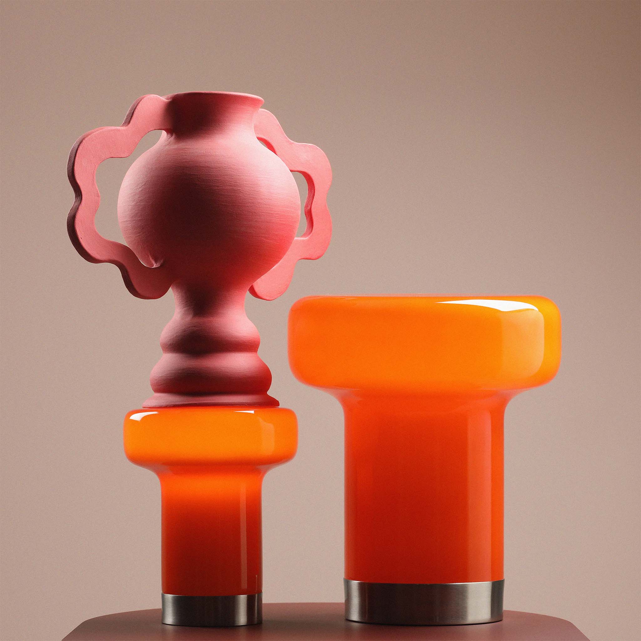 Die kompakte Tischleuchte BONBON TABLE ORANGE S, entworfen von Mikołaj Nicer, setzt einen stilvollen Akzent und verleiht jedem Raum Wärme und Behaglichkeit. Der opalglasene Schirm in einem intensiven Orangeton schafft eine besonders wohnliche Atmosphäre und streut ein angenehmes, warmes Licht, das sofort ins Auge fällt.