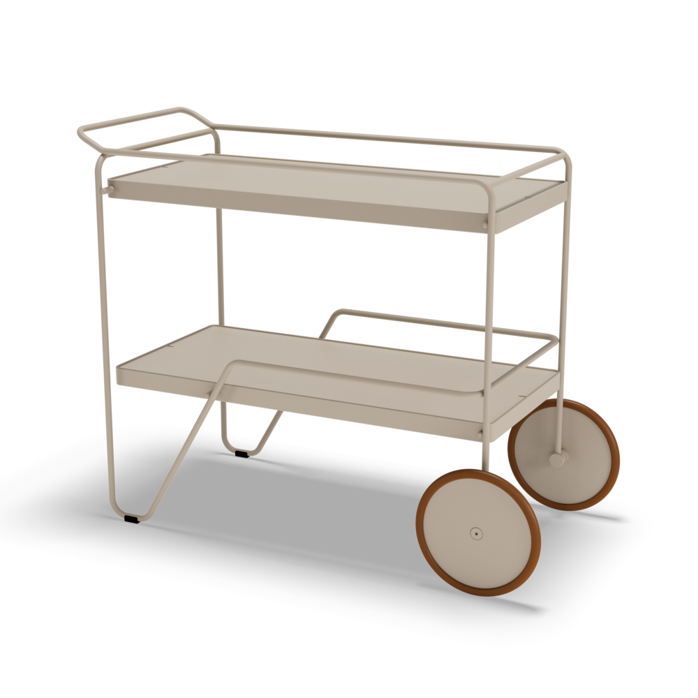 Der CLICK Servierwagen vereint ein geradliniges Design mit intelligenter Funktionalität. Ob für Getränke und kleine Speisen oder als mobiler Beistelltisch – er lässt sich flexibel in unterschiedlichste Einsatzbereiche integrieren. Das reduzierte Gestell in Kombination mit widerstandsfähigen Materialien ist auf den täglichen Gebrauch ausgelegt. Dank der leichtgängigen Rollen lässt sich der Wagen mühelos über verschiedene Bodenbeläge bewegen. Ein vielseitiges Möbelstück, das dem Außenbereich Struktur, Stil und zusätzlichen Komfort schenkt.