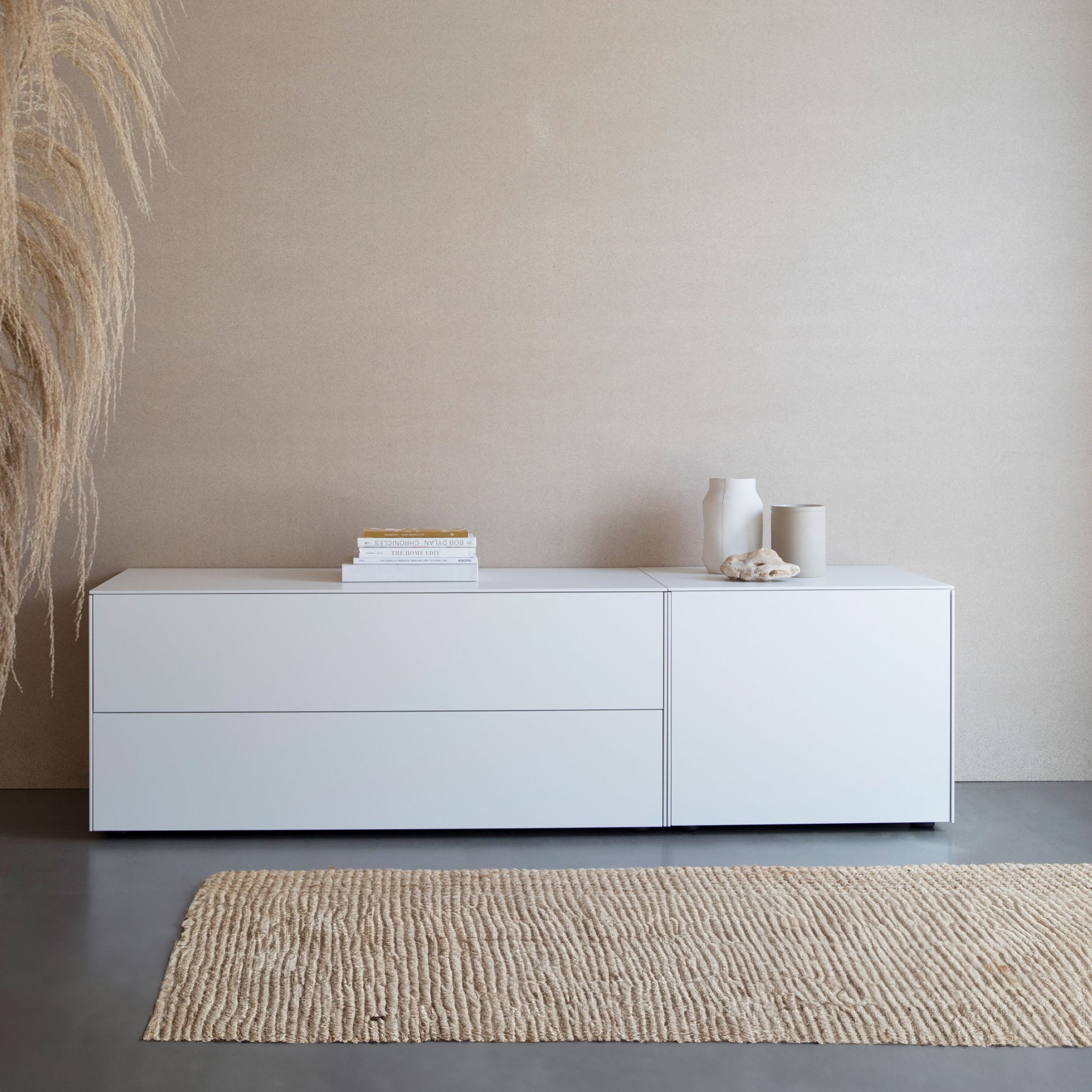 Die connect-Kommoden vereinen Flexibilität mit stilvollem Design und sind Teil unseres Schnelllieferprogramms. Mit insgesamt acht modularen Varianten lässt sich das Sideboard individuell konfigurieren: Zur Auswahl stehen zwei Breiten (60 cm oder 120 cm), zwei Höhen (50 cm oder 75 cm) sowie Ausführungen mit Schubladen oder Türen.