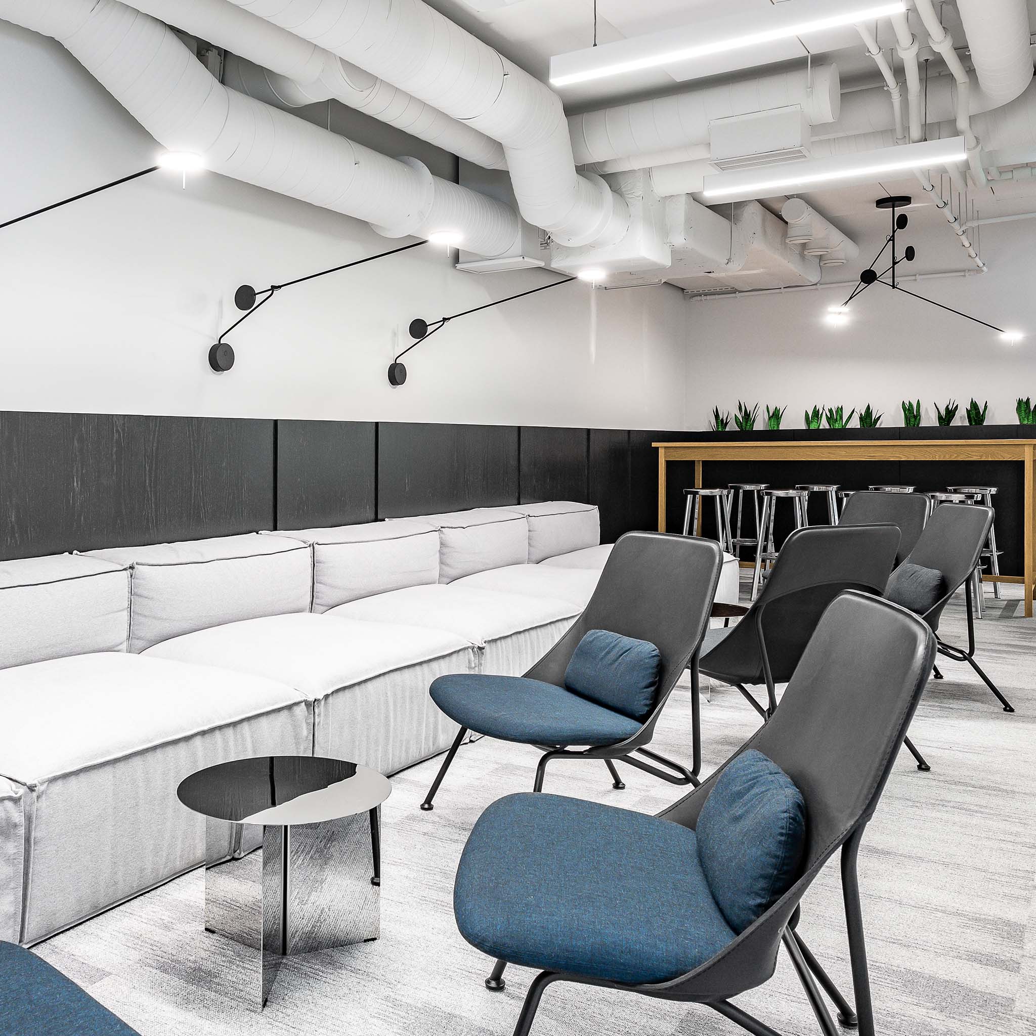 Trotz optischer Leichtigkeit, jedoch dank seiner Sitzfläche mit der Stützung aus elastischen Bändern, gespannter Rückenlehne und freiem Lumbalkissen, das verschiedene Sitzarten erleichtert, bietet Strain den von den großformatigen Sitzgarnituren zu erwartenden Komfort. Auf komplexe Metallkonstruktion werden Sitzkissen und Schale der Rückenlehne aufgezogen, die aus zweidimensionaler Fläche zugeschnitten ist. Ihre Form erhält sie durch die Spannung von der Spitze der Konstruktion bis zur Unterseite der Sitzfläche.