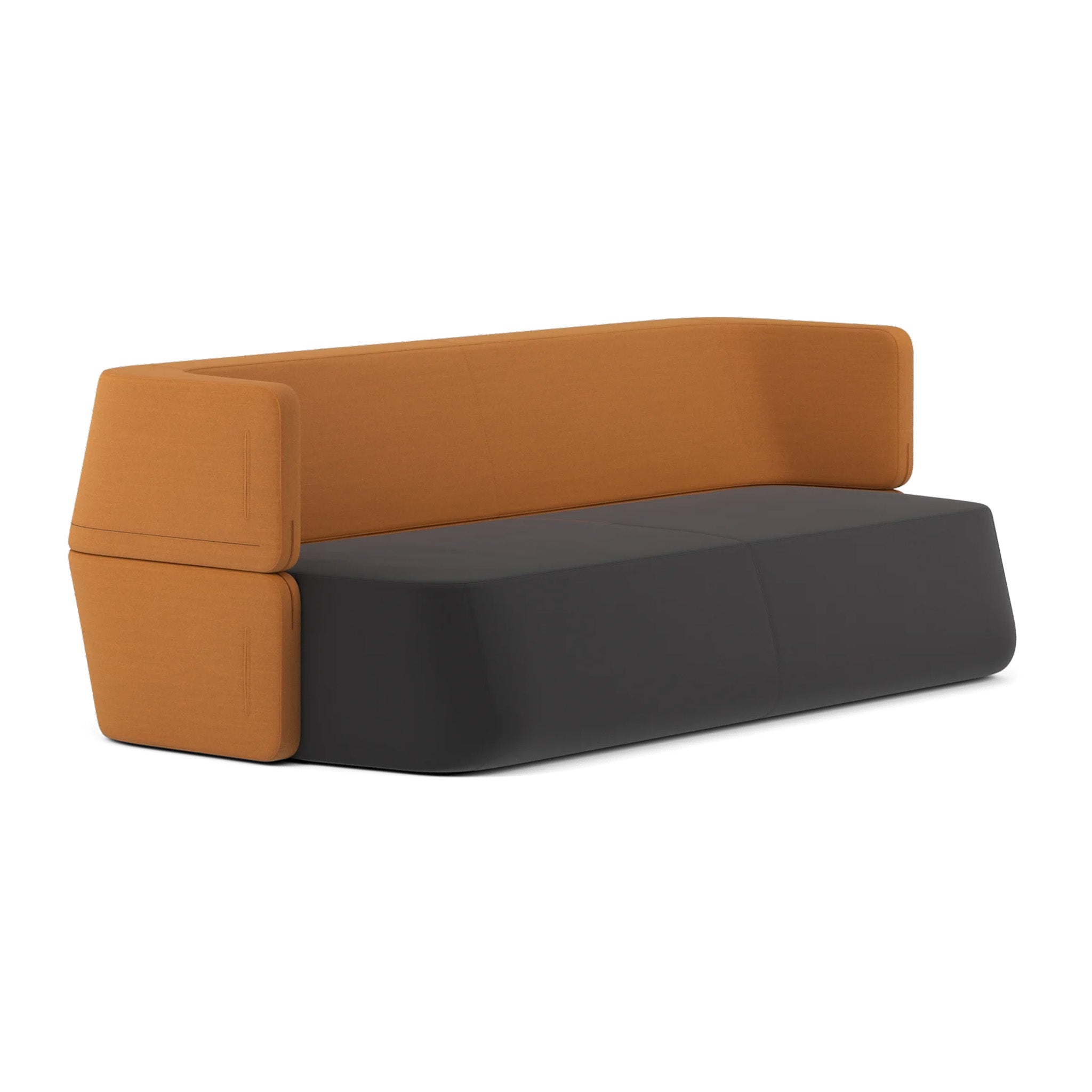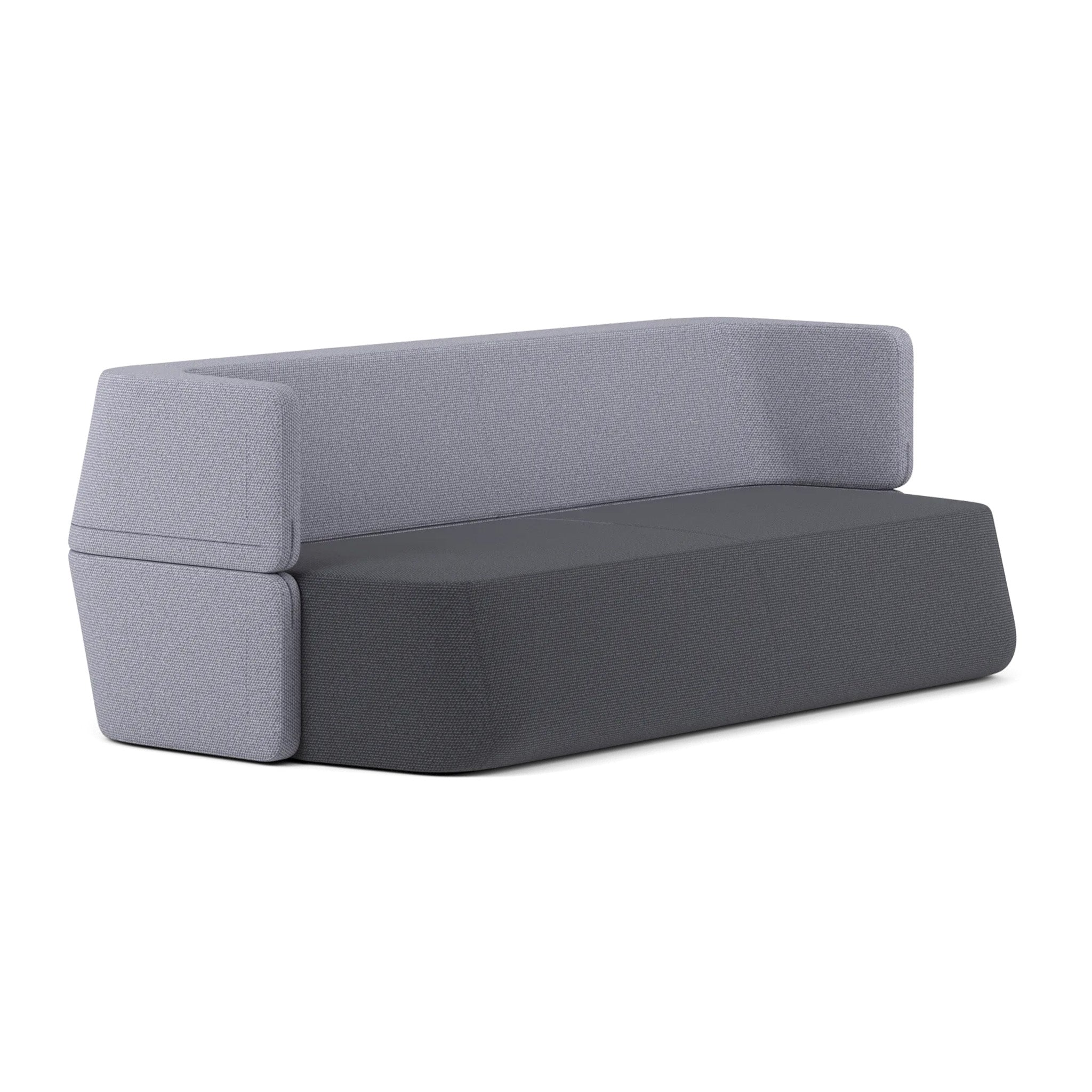 Basiert auf unserer bisherigen Erfahrung mussten wir feststellen, dass komplexe Mechanismen langfristig nicht wirklich zuverlässig funktionieren. Deshalb haben wir unseren Fokus auf das möglichst einfache Ausklappverfahren gerichtet. Wir haben ein System erschaffen, bei dem die Rückenlehne um 180 Grad um die Sitzfläche gedreht und so zu einem Teil des Bettes wird. Die offene Bettform ist symmetrisch und fügt sich hervorragend in den Raum ein.