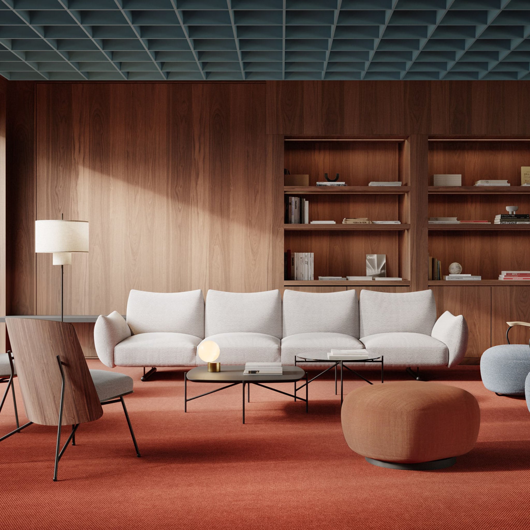 Eine pralle, aufgeblähte Form, die sofortigen Komfort nahelegt, zusammen mit gezackten Kanten, um die innere Fülle weiter zu betonen. Buffa, schon der Name klingt nachgiebig und aufsaugend, wie ein Schalldämpfer. Seine Verbindung zur italienischen komischen Oper kommt erst sekundär durch eine gewisse Verspieltheit und Leichtfertigkeit der Form. Formal ging es darum, einen klassischen, schlanken und kantigen Stil aufzugeben und einen deutlichen Schritt hin zur weichen, abgerundeten Linie zu machen, um ein Sofa zu schaffen, das nicht mit Kissen gezähmt oder besänftigt werden muss.
