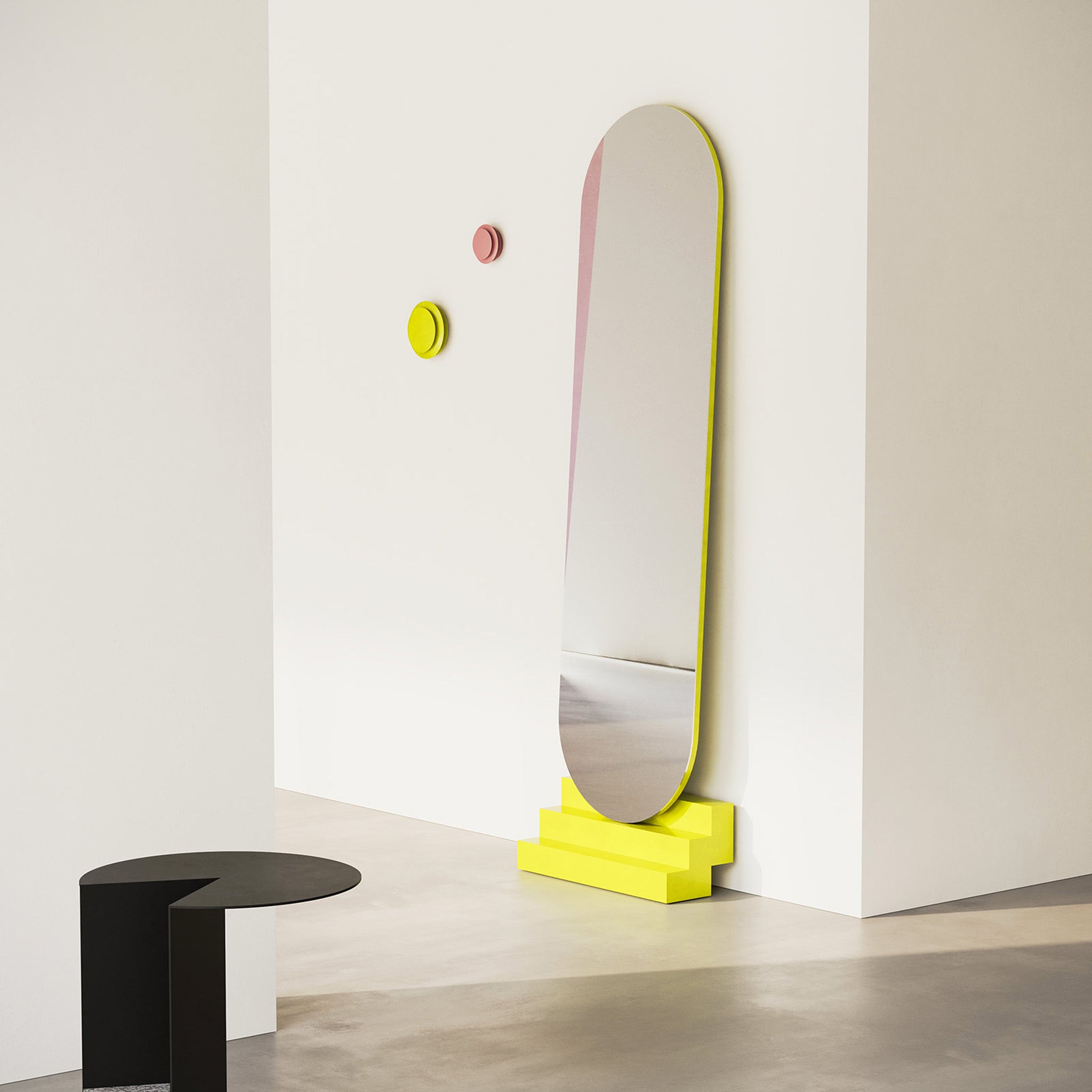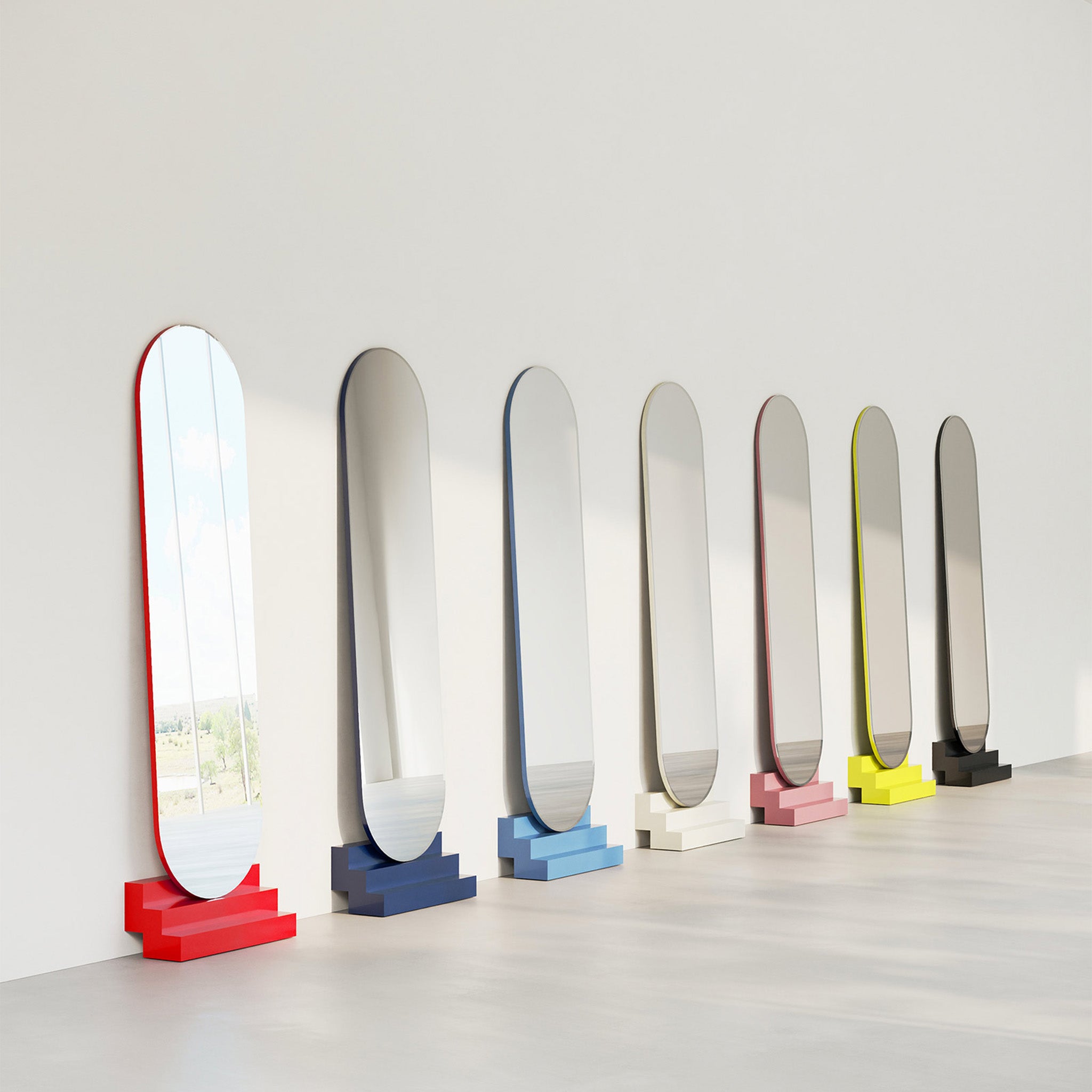 NONCHALANT wirkt, als lehne er mühelos an der Wand – und ist doch fest verankert. Erhältlich in sieben ausdrucksstarken, monochromen Farben. Ein Spiegel, der Gelassenheit ausstrahlt und gleichzeitig klare Präsenz zeigt.