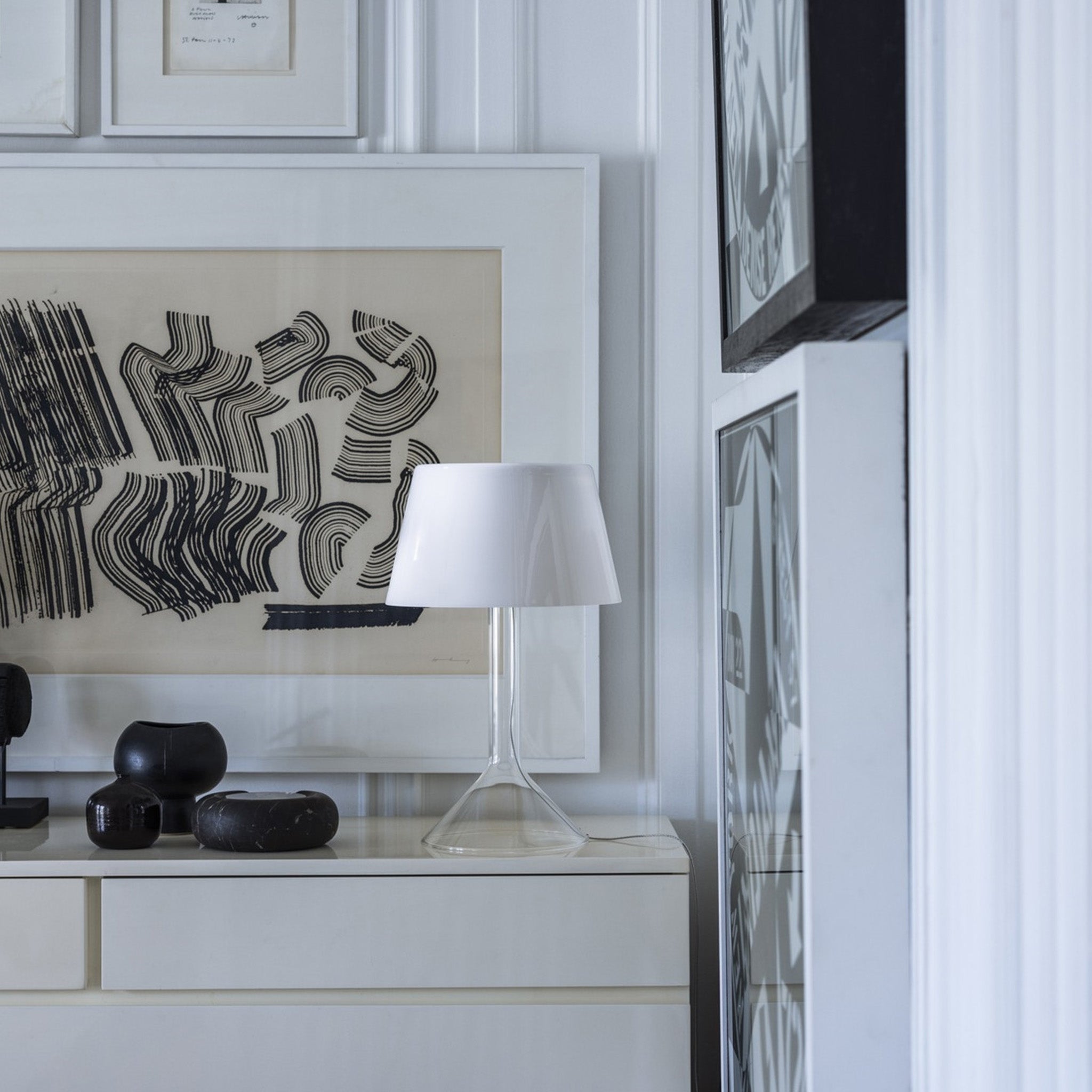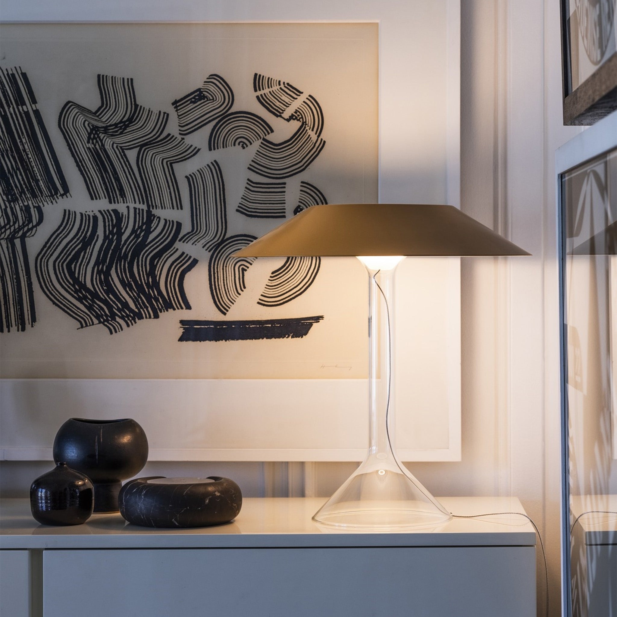 Chapeaux ist eine Tischleuchte, die von Rodolfo Dordoni für Foscarini gestaltet wurde. Charakteristisch ist ihr schirmartiger Lichtaufsatz, der auf einem transparenten Pyrex-Korpus sitzt und eine integrierte, unsichtbare LED-Lichtquelle verbirgt. Der Aufsatz ist in unterschiedlichen Farben und Ausführungen erhältlich und sorgt für ein weiches, indirektes Licht, das sich sowohl auf der Oberfläche als auch im Schirm selbst reflektiert. Zudem ist die Leuchte mit einem Touchdimmer ausgestattet, über den sich die Helligkeit regulieren lässt, sowie mit einer Memory-Funktion, die die zuletzt gewählte Einstellung speichert.