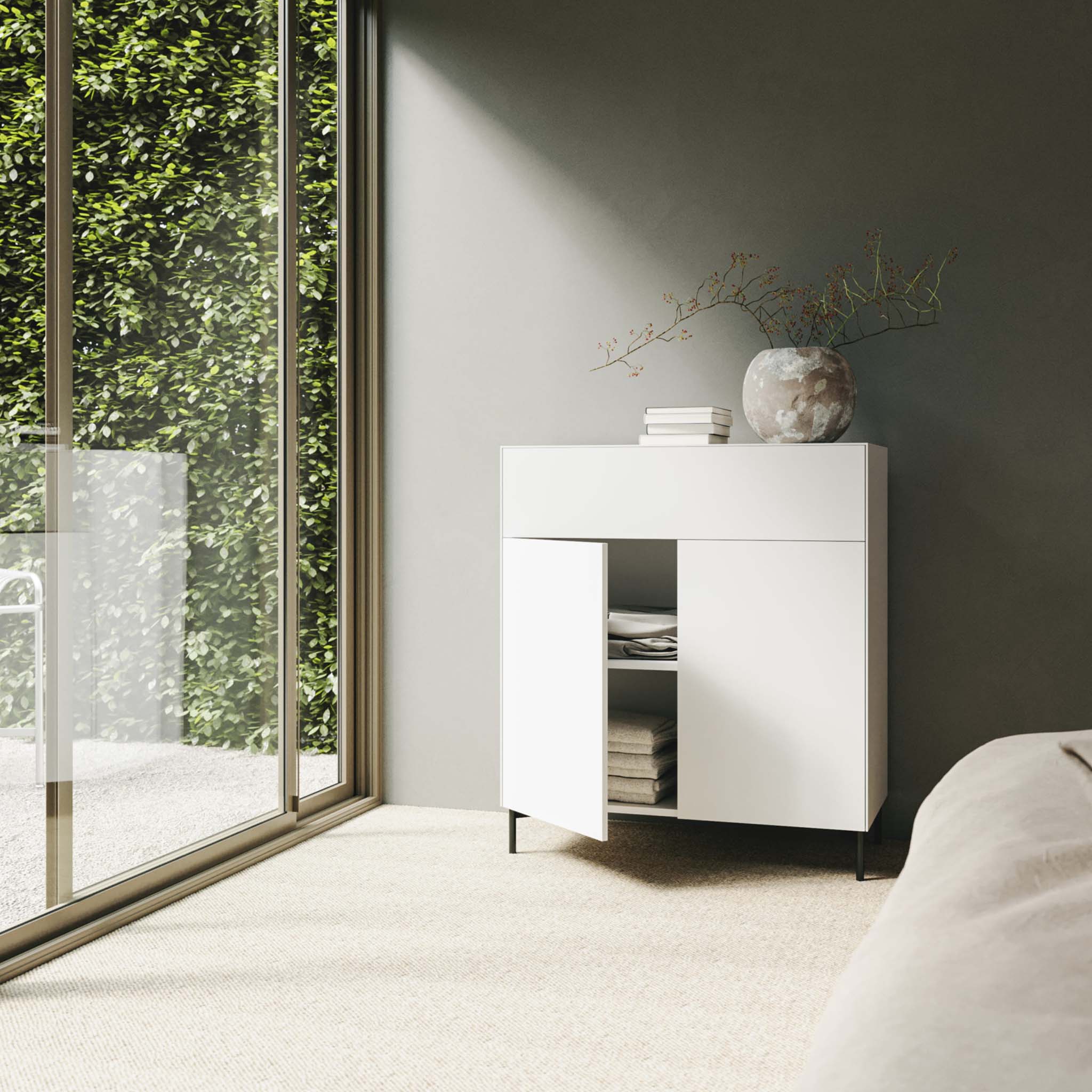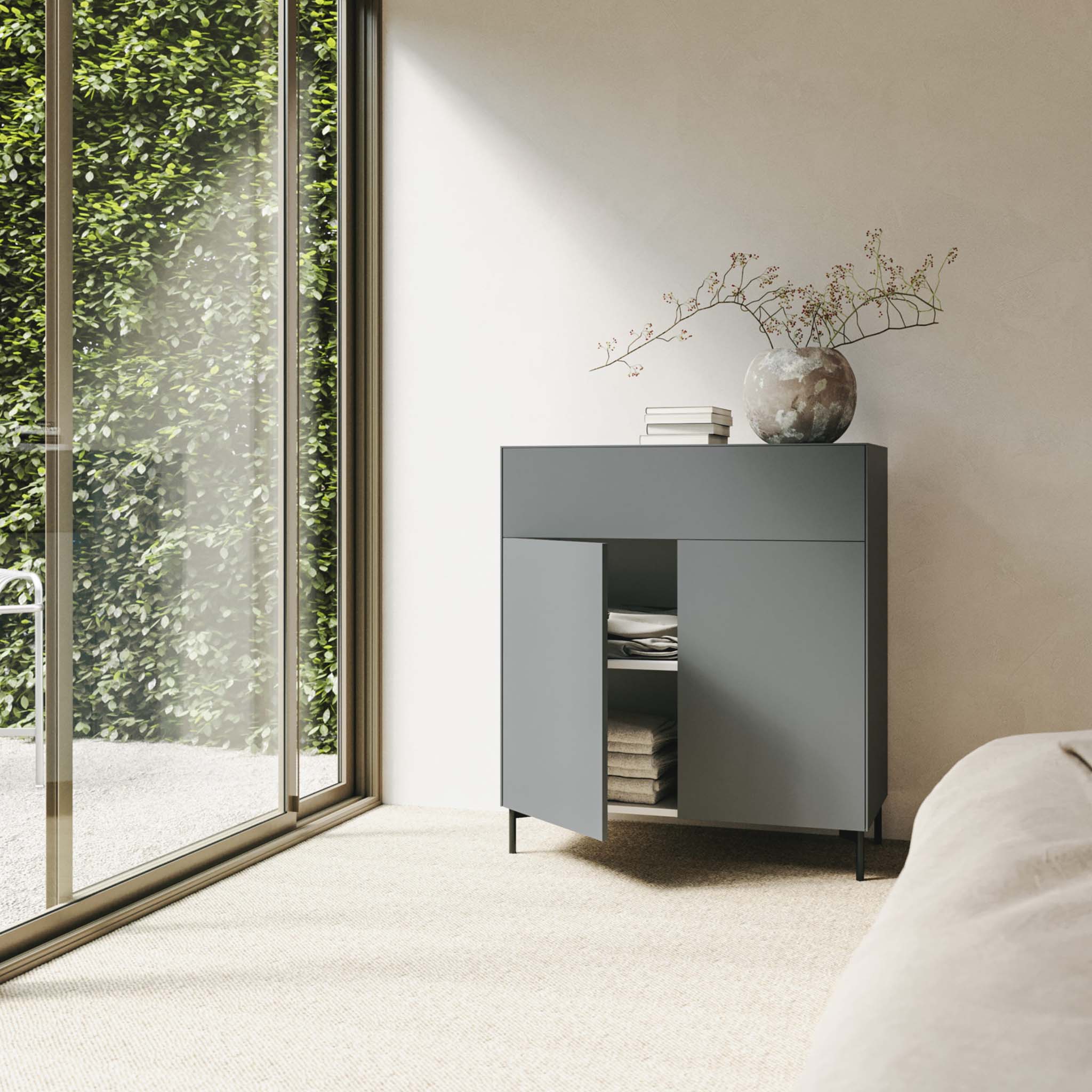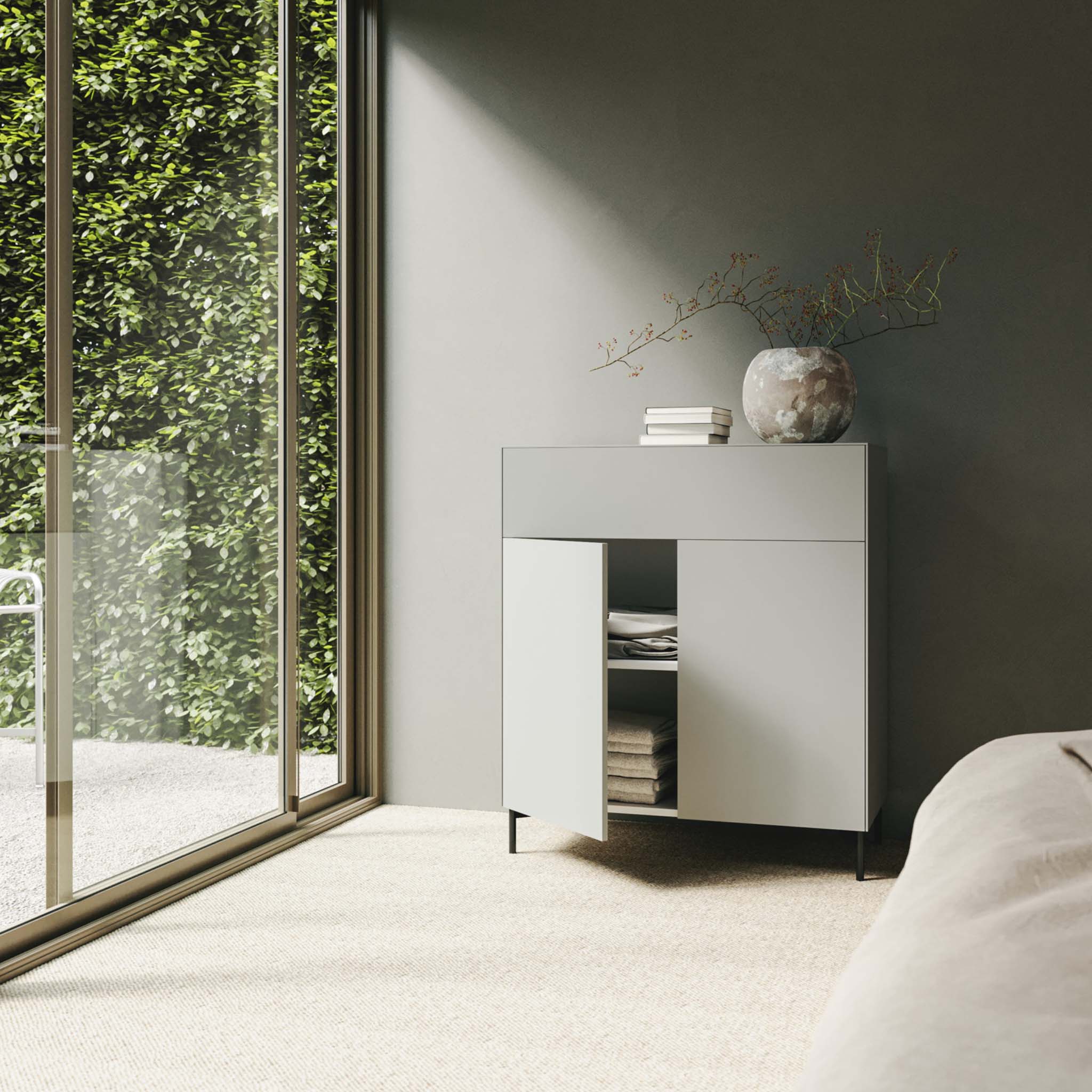 Die connect-Kommoden vereinen Flexibilität mit stilvollem Design und sind Teil unseres Schnelllieferprogramms. Mit insgesamt acht modularen Varianten lässt sich das Sideboard individuell konfigurieren: Zur Auswahl stehen zwei Breiten (60 cm oder 120 cm), zwei Höhen (50 cm oder 75 cm) sowie Ausführungen mit Schubladen oder Türen.