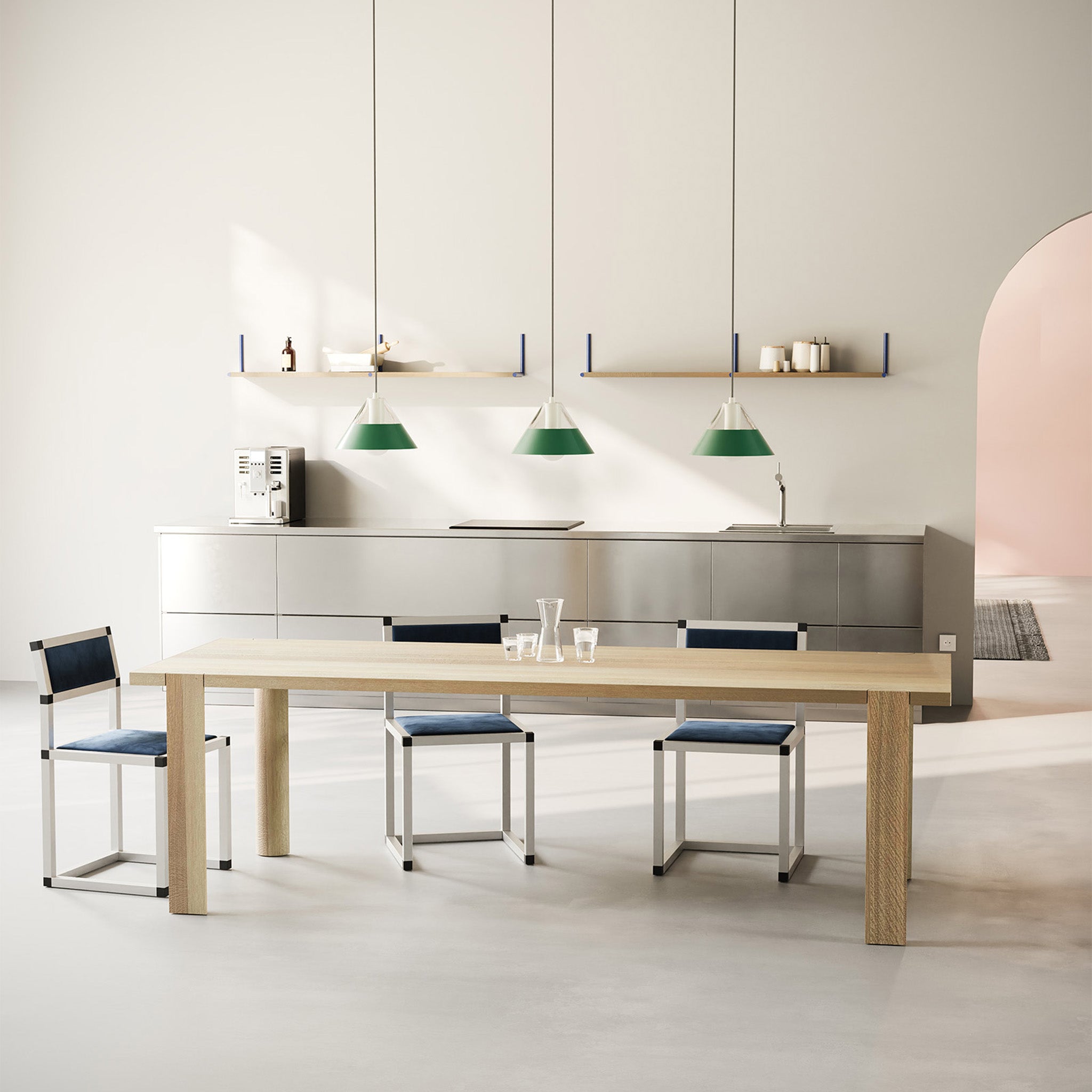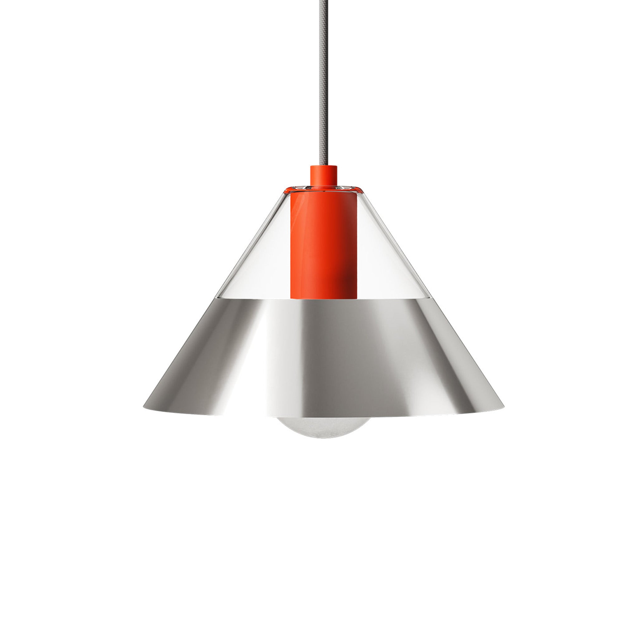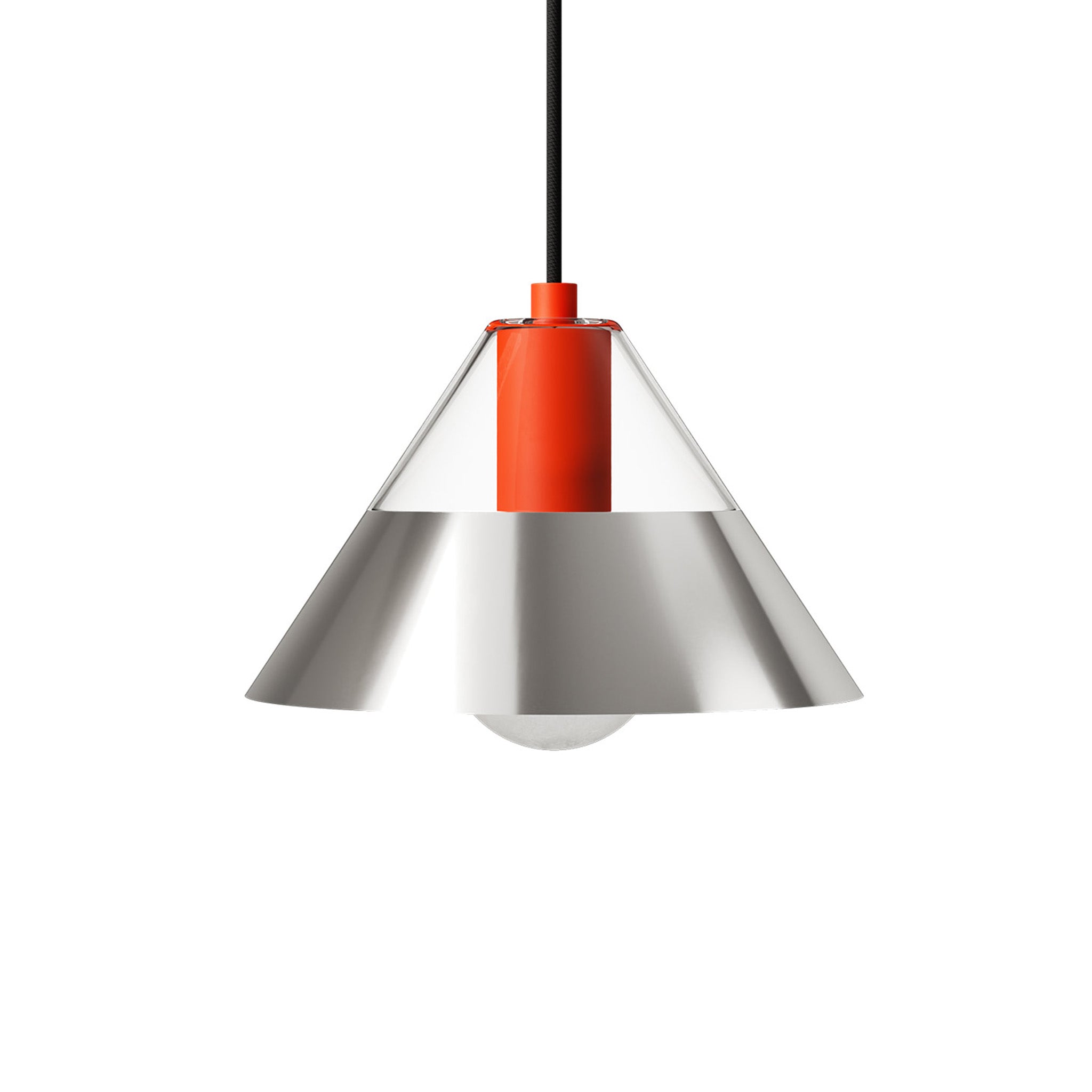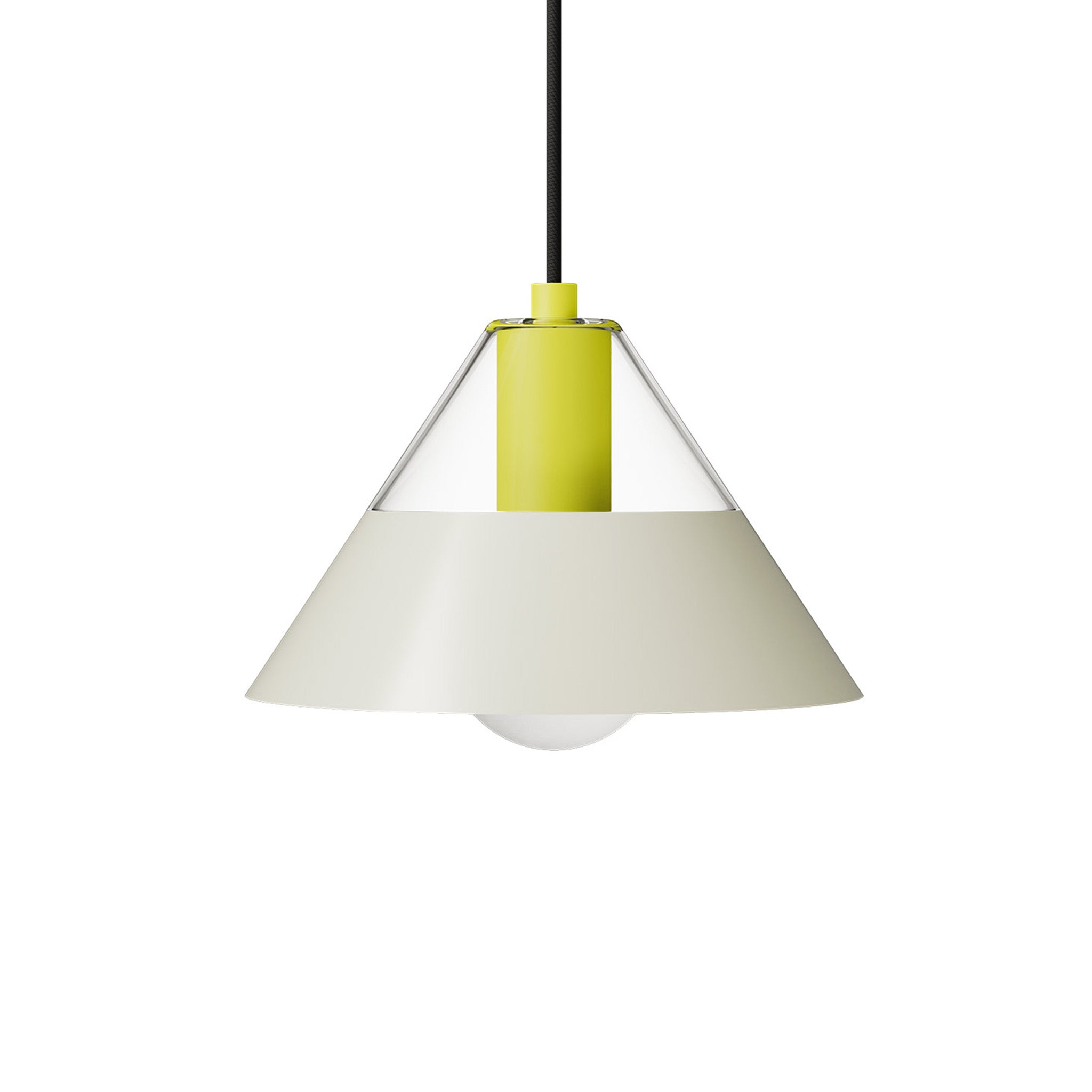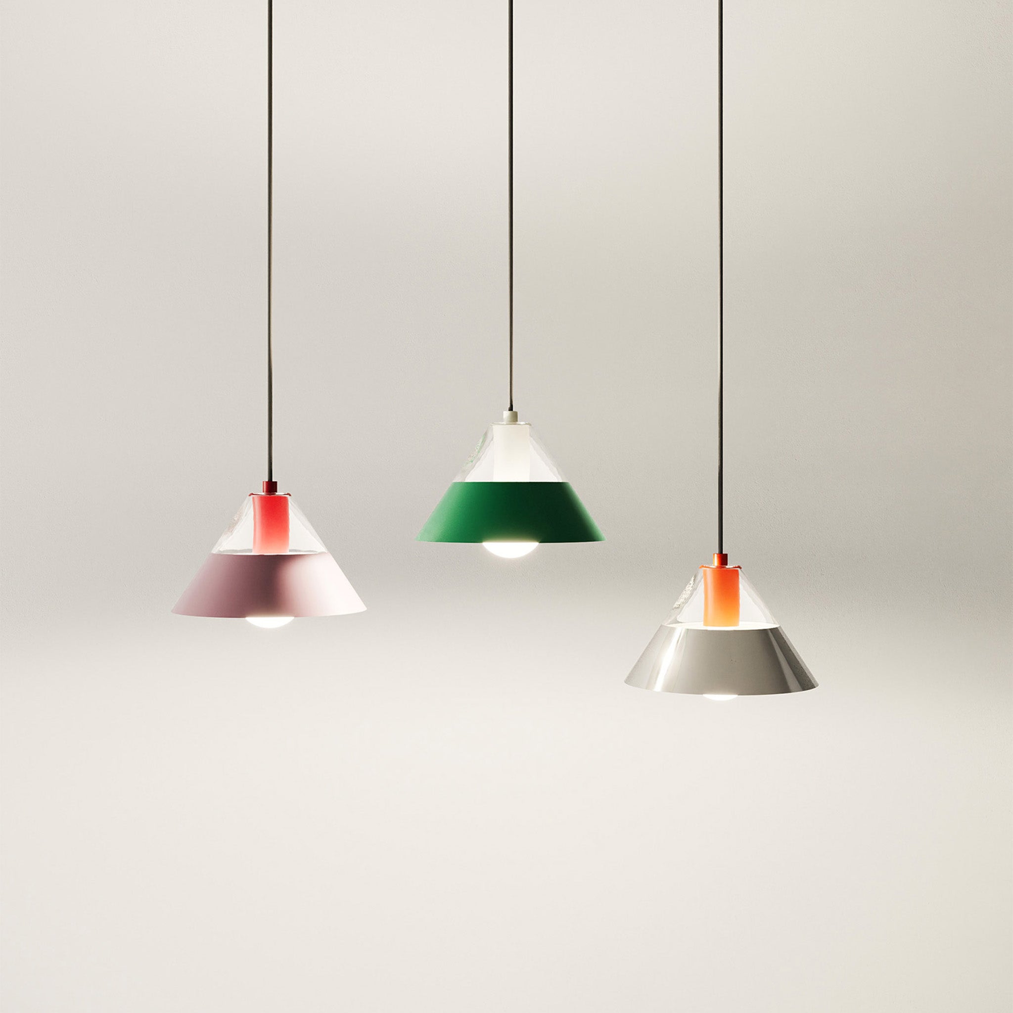 FIFTY FIFTY bringt Form und Licht in Balance: Oben spendet der Glasschirm warmen Glanz, unten lenkt der Metallschirm das Licht gezielt dorthin, wo es gebraucht wird. Zwischen Atmosphäre und Funktion entfaltet sie ihre Wirkung – erhältlich in sieben sorgfältig kuratierten Kombinationen.