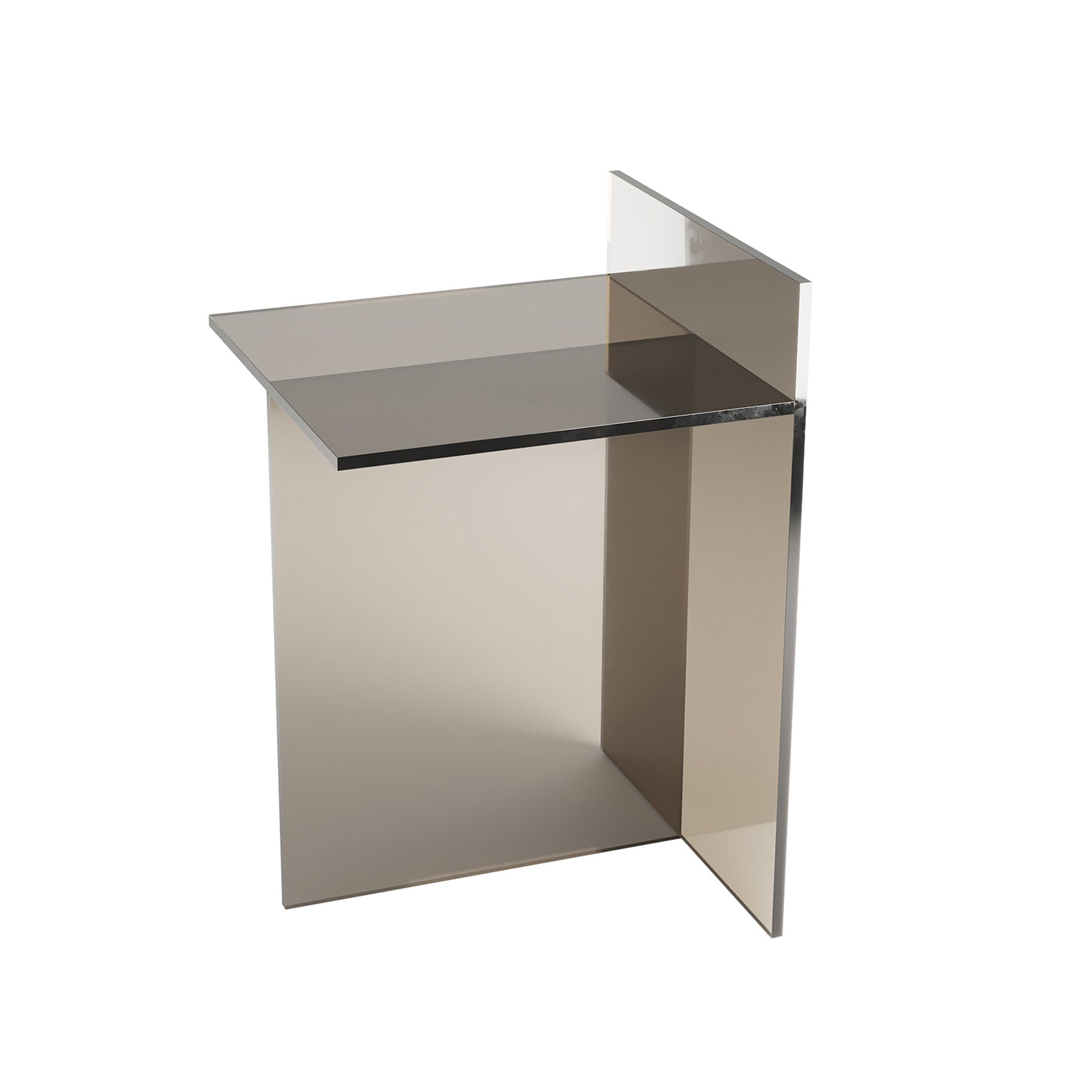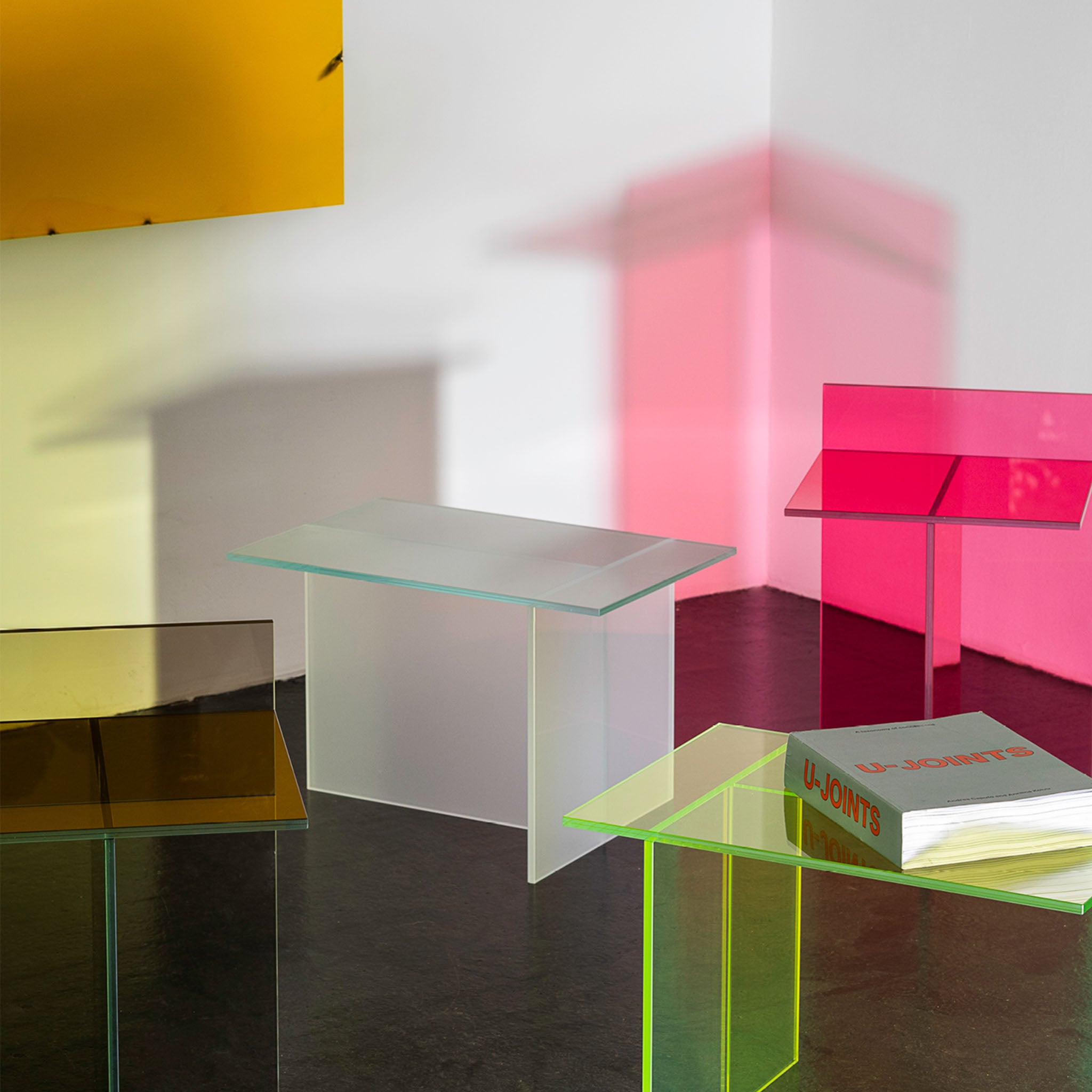 Mit farbigem Glas und klaren Linien formt THEO ein grafisches T, das sich aus jedem Blickwinkel neu zeigt. Zwei mögliche Positionen machen ihn flexibel im Raum – sein Charakter bleibt dabei stets funktional, elegant und unverwechselbar.