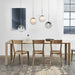 Die Beine von dreieckiger Gestalt durchdringen in natürlicher Weise die massive Platte und verleihen ihr einen interessanten Effekt. Besonders kommt der Tisch in seiner Naturvariante zur Geltung, welche die Maserung des Holzes unterstreicht. Dank seiner schmalen Platte lässt er sich auch mit Esszimmerstühlen kombinieren.
